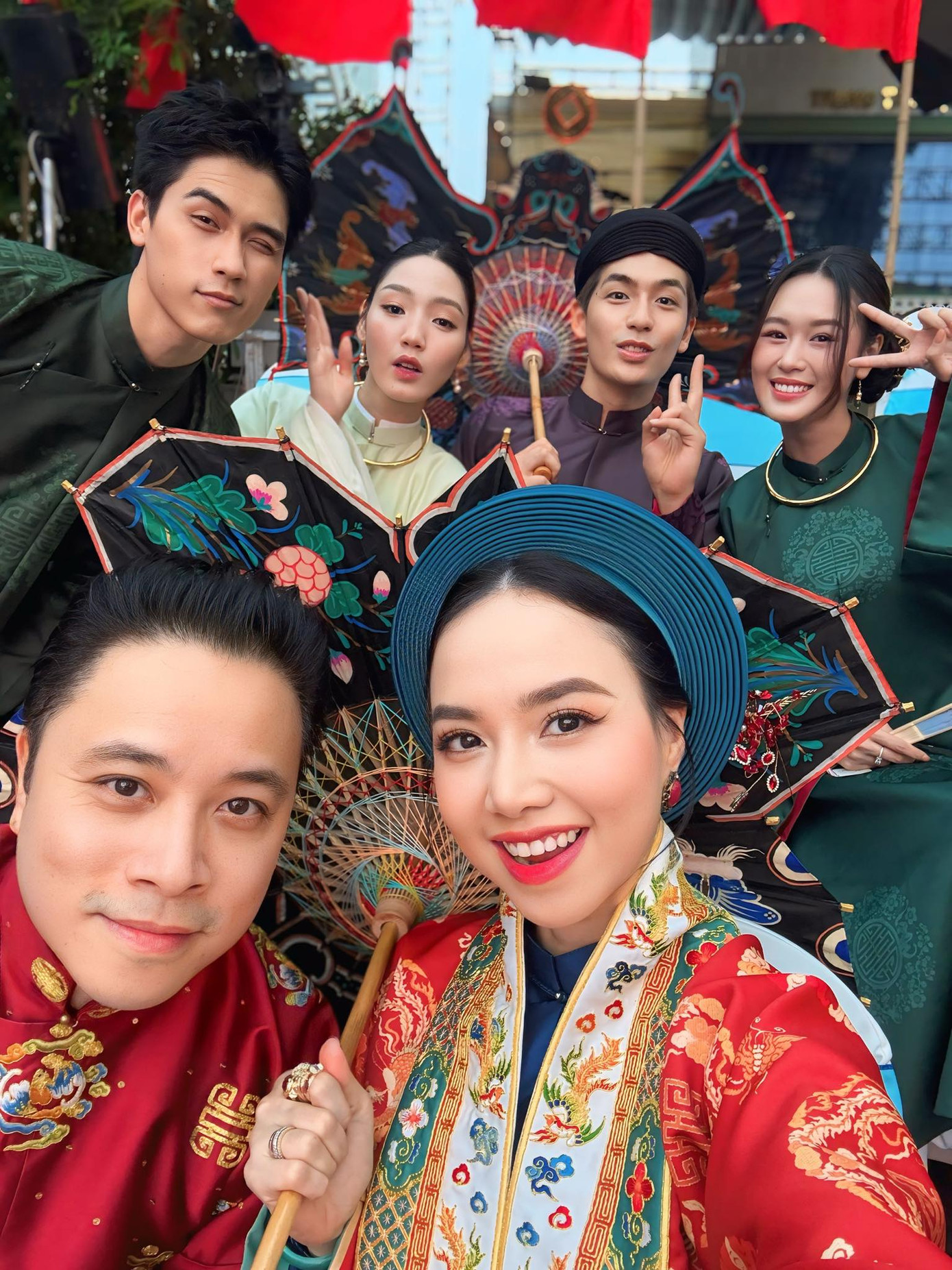 Định Ngọc Diệp chia sẻ thêm: "Anh Victor Vũ và giám đốc mỹ thuật Ghia Ci Fam luôn tôn trọng tính trang nghiêm, tinh tế, có sự phân cấp rõ ràng giữa các tầng lớp xã hội, nhưng vẫn có nhiều phá cách riêng trong sáng tạo mỹ thuật điện ảnh. Áo ngũ thân của tầng lớp bình dân và quý tộc. Nón và khăn đóng dành cho nam giới và nữ giới khi ra đường. Người lao động mặc áo tứ thân giản dị hơn. Tầng lớp giàu có mặc áo dài lụa, nón quai thao hoặc đội khăn vấn".