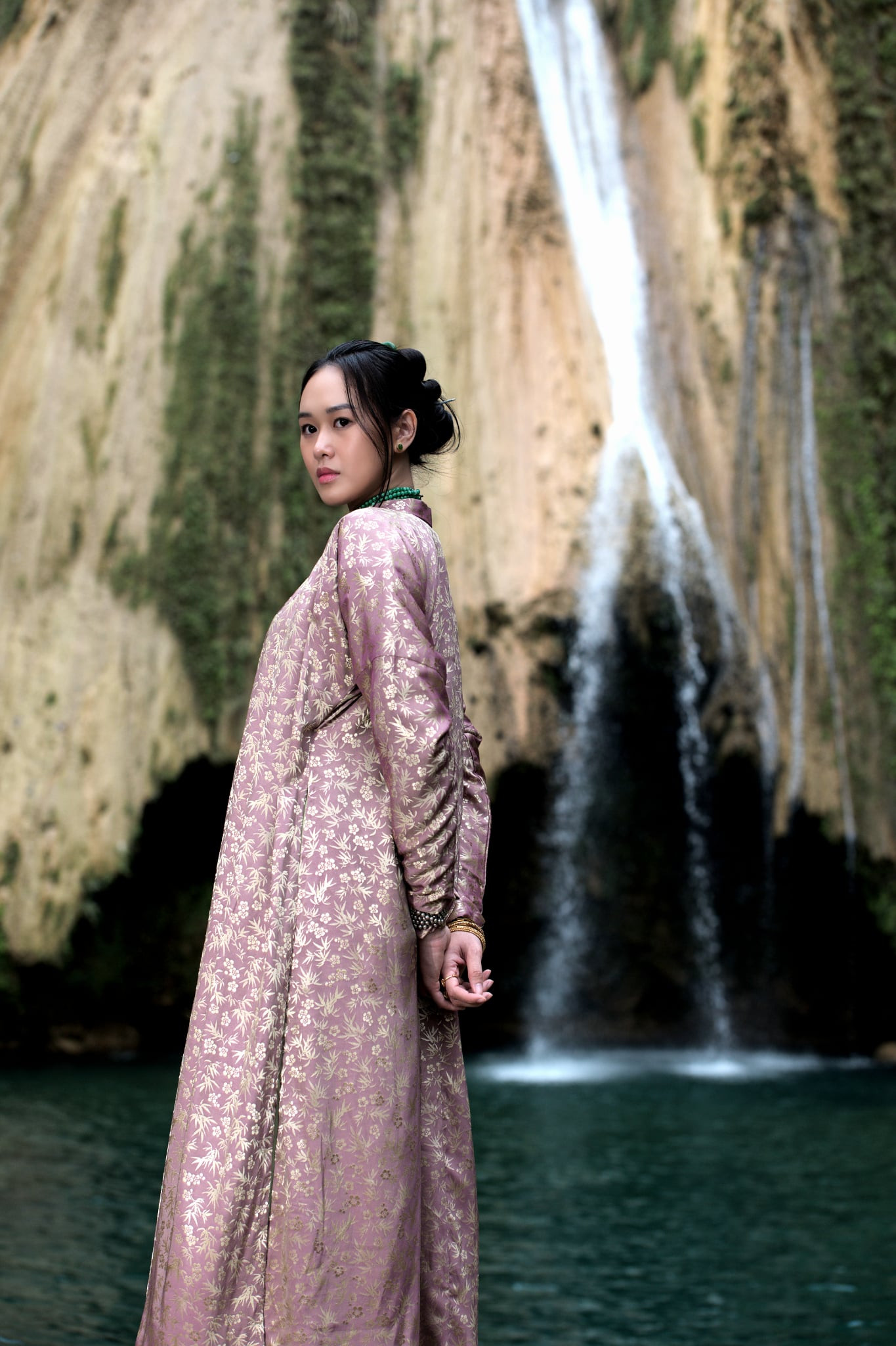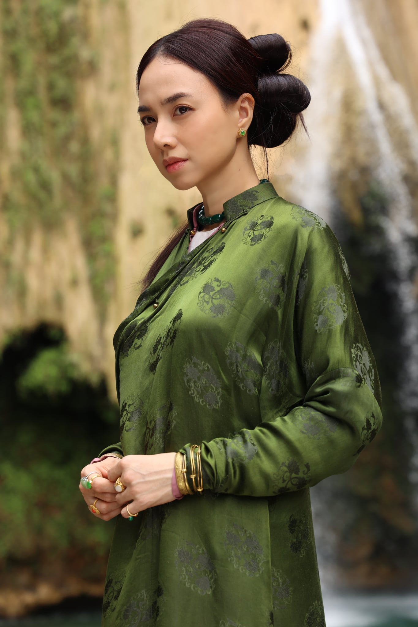Minh Anh (vai Nga) được mặc rất nhiều chiếc áo dài và có những họa tiết khác nhau. “Kỷ niệm nhớ nhất của tôi trong quá trình quay chắc là khi dàn cast đi đến đâu, xuất hiện cùng tạo hình nhân vật đều được người dân ở Cao Bằng và Tuyên Quang khen và xin chụp ảnh rất nhiều. Có chú lại chỗ tôi còn hỏi: ‘Áo dài này có mua được không con, chú mua về tặng con gái’”, Minh Anh tâm sự.