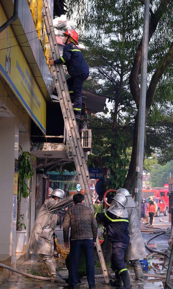 Cán bộ chiến sĩ phá cửa kính phòng giao dịch phía đường Tôn Đức Thắng phun nước vào trong dập lửa. Đến hơn 1h cùng ngày, đám cháy được dập tắt.