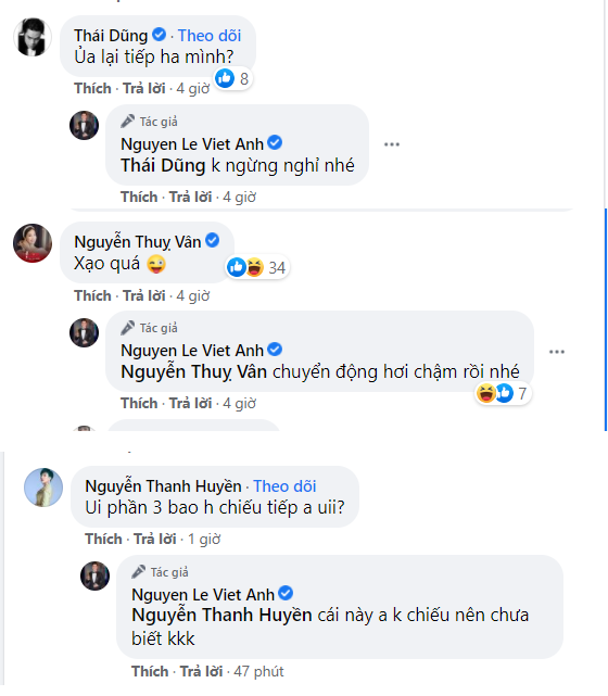 Mới đây, diễn viên Việt Anh đăng tải trên Facebook hình ảnh hậu trường cùng Lương Thu Trang và đoàn phim. Kèm đó, nam diễn viên tiết lộ bất ngờ rằng bộ phim “Hướng dương ngược nắng” sẽ có phần 3.