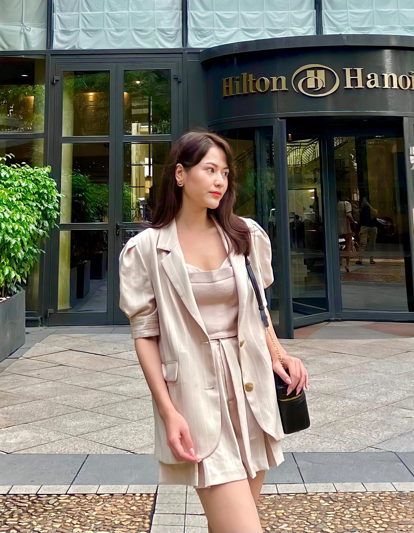 Set đồ này của Việt Hoa cũng nhận được nhiều lời khen. Sự kết hợp giữa quần soóc với áo blazer đồng bộ đã giúp nữ diễn viên nhìn trẻ trung, phóng khoáng mà vẫn đủ lịch sự.