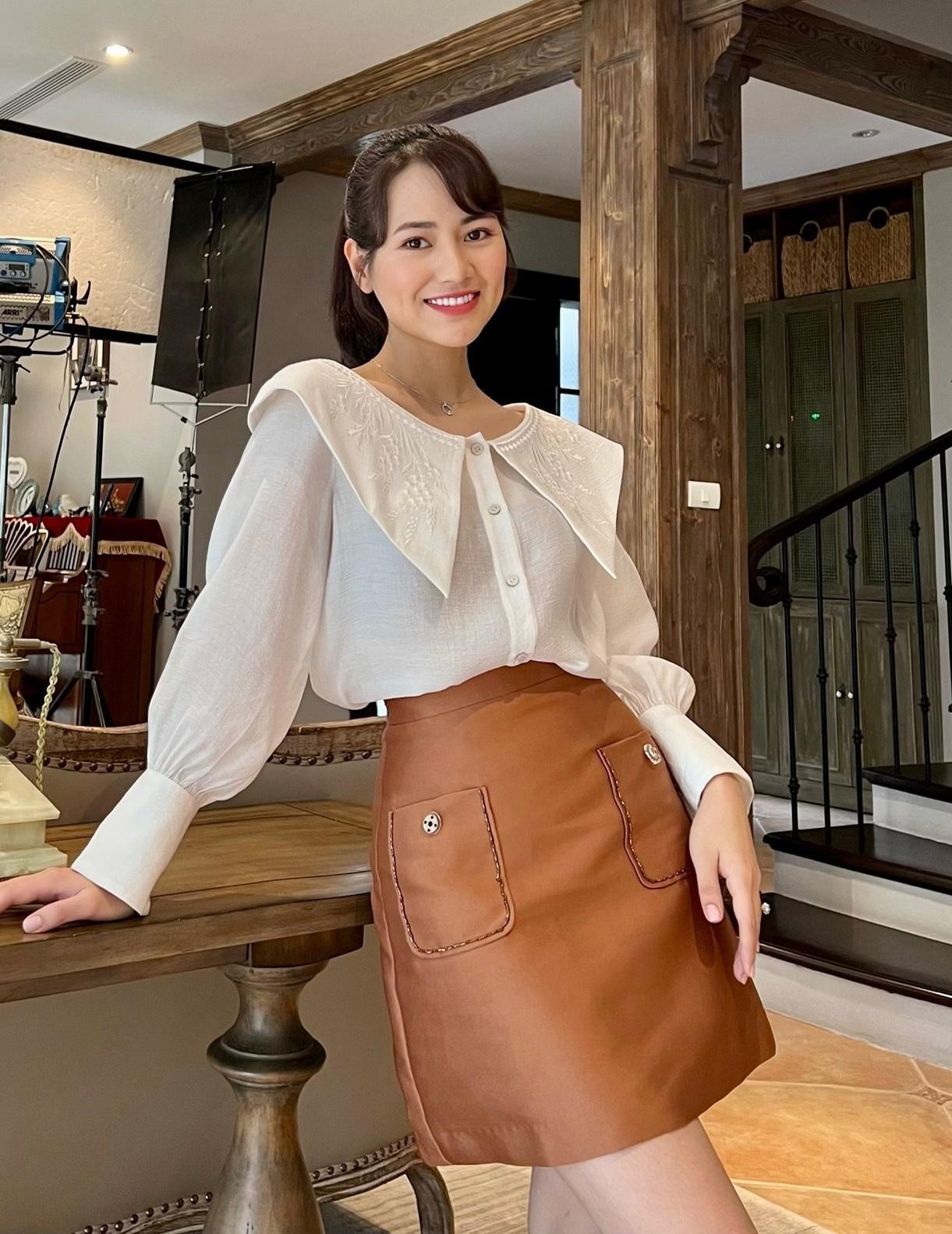 Tới những tập tiếp theo, Việt Hoa tiếp tục có phong cách thời trang khá đa dạng. Cô ưa chuộng kết hợp váy yếm bên ngoài với áo blouse điệu đà bên trong, tạo thành set đồ rất hợp với mùa Thu mà vẫn nữ tính và hợp mốt.
