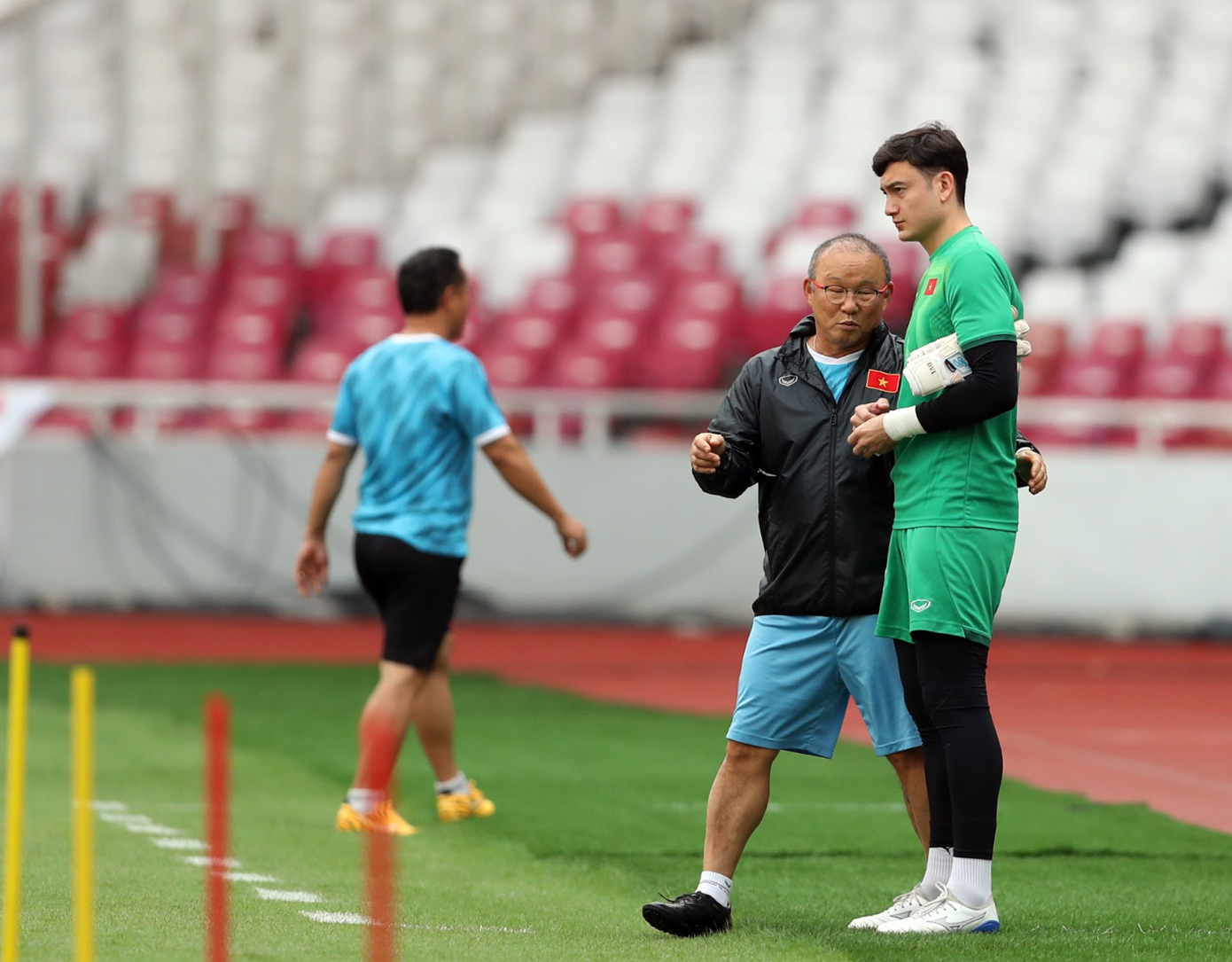 Ở buổi tập làm quen sân Bung Karno, HLV Park Hang-seo tỏ ra đặc biệt quan tâm tới Đặng Văn Lâm và các thủ môn đội tuyển Việt Nam. Nhà cầm quân Hàn Quốc đã dành thời gian trao đổi riêng với thủ môn Topenland Bình Định khá lâu. Indonesia kết thúc vòng bảng với vị trí nhì bảng A, bằng điểm số Thái Lan nhưng kém chỉ số phụ. Dù hàng tấn công Indonesia được đánh giá chưa hiệu quả khi lỡ nhiều cơ hội, đội bóng của ông Shin Tae-yong vẫn ghi 12 bàn, ngang bằng đội tuyển Việt Nam.