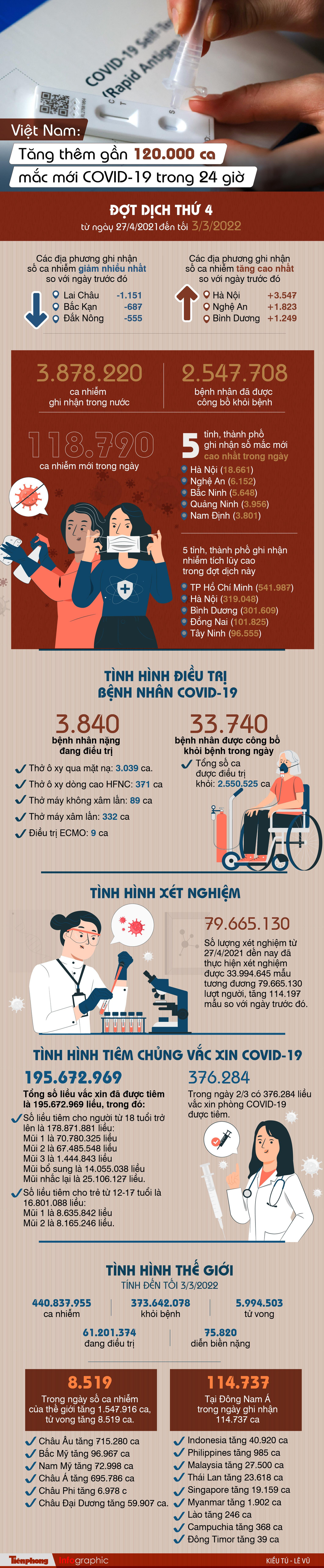 Google News Việt Nam: Tăng thêm gần 120.000 ca mắc mới COVID-19 trong 24 giờ