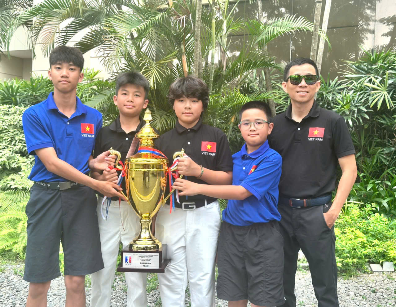 Chung cuộc, dưới sự dẫn dắt của HLV Bạch Cường Khang, 4 vận động viên trẻ Việt Nam đã giành được chiếc Cup vô địch đồng đội tại JGFP International Interclub 2025 trong sự vỡ oà hạnh phúc của các cổ động viên Việt Nam có mặt tại sân.