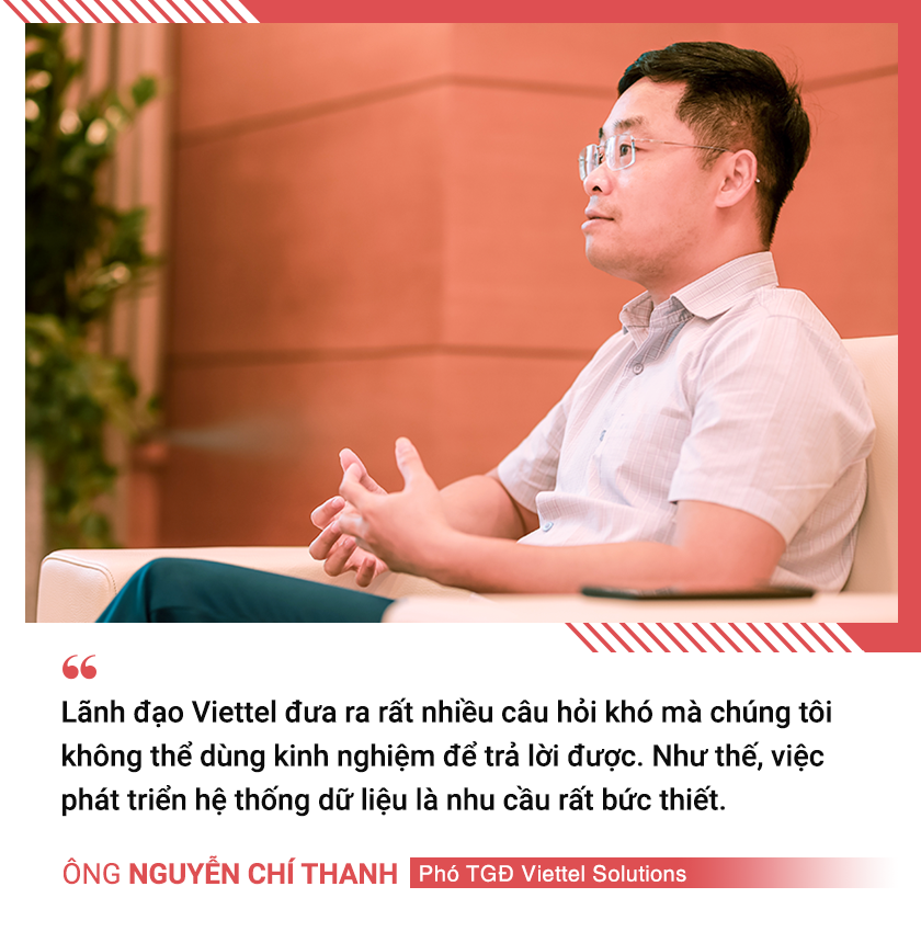 Trong quá trình điều hành, lãnh đạo Viettel phân tích rất sâu và hỏi rất xoáy (cười), ví dụ như khu vực nào đang kinh doanh tốt, kinh doanh tốt cái gì, cái gì đang không tốt, không tốt thì vì sao. Lãnh đạo Viettel đưa ra rất nhiều câu hỏi khó không thể dùng kinh nghiệm để trả lời được. Việc phát triển hệ thống dữ liệu lúc này là nhu cầu rất bức thiết, phải làm thế nào để thu thập dữ liệu, khai thác dữ liệu thành các thông tin có ý nghĩa để có thể ra quyết định dựa trên thông tin đó.