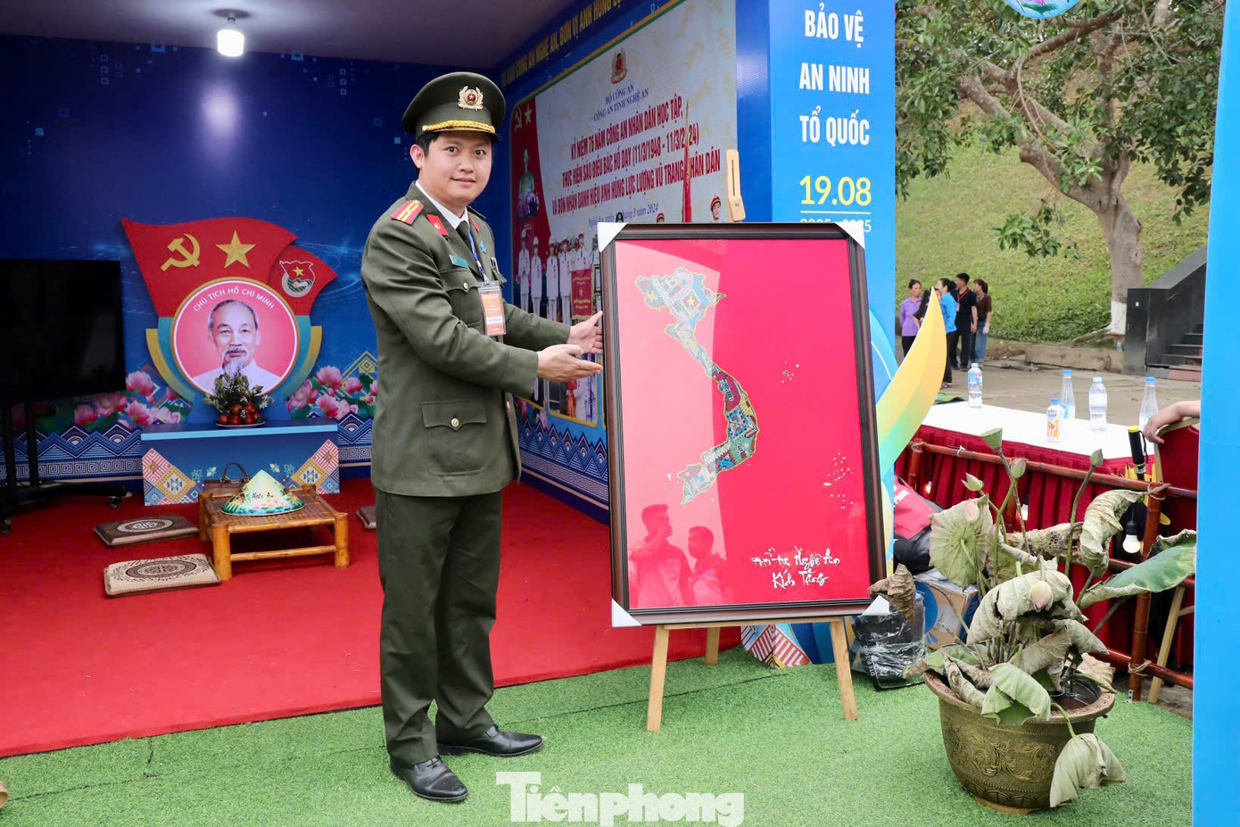 Bên cạnh đó, đoàn còn trưng bày nhiều sản phẩm đặc trưng như chè sen, cu đơ, nón lá vẽ tay và bộ tranh thư pháp về Sáu điều Bác Hồ dạy Công an nhân dân, thu hút sự quan tâm của đông đảo đoàn viên, thanh niên.