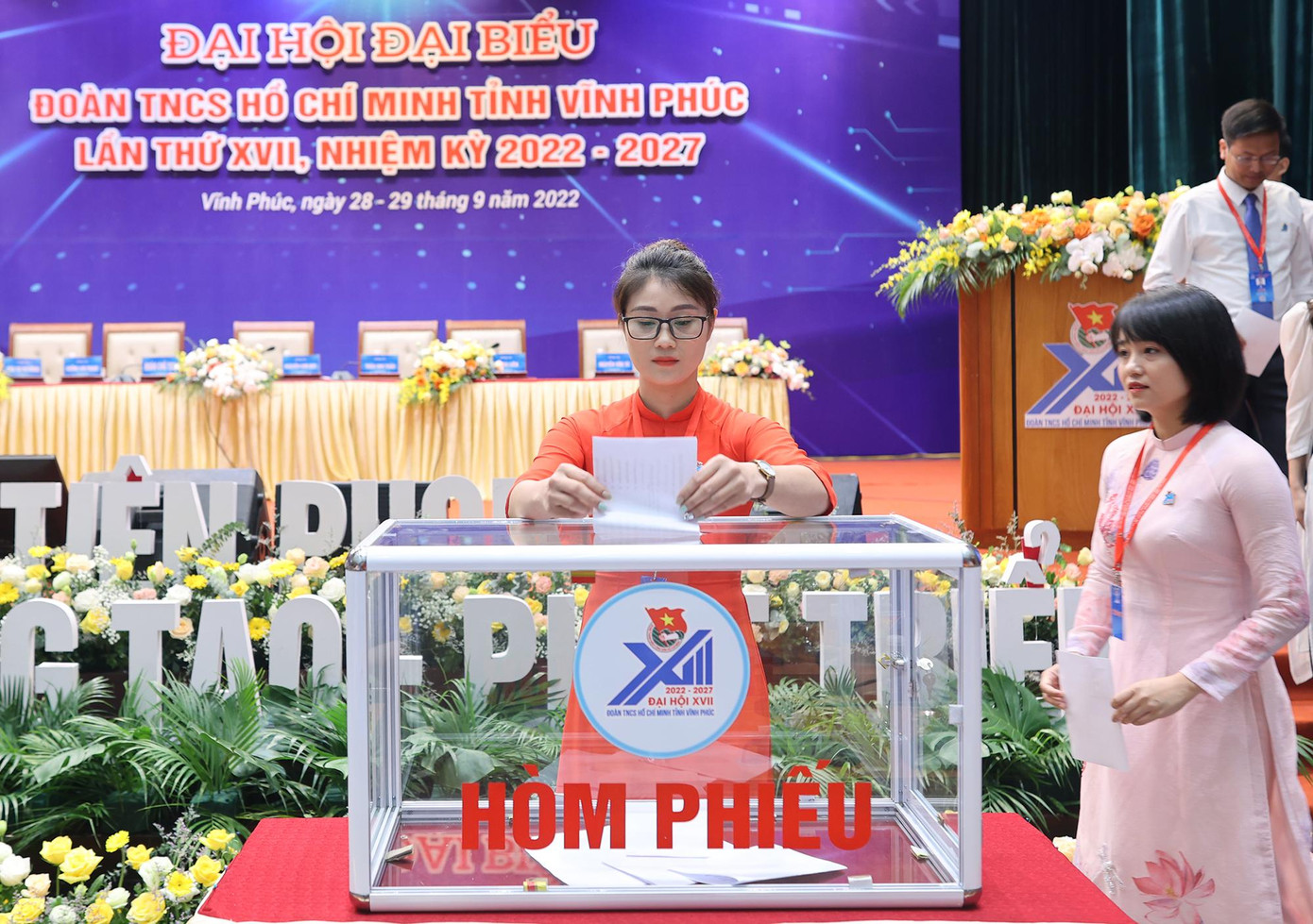 Chiều 28/9, Đại hội đại biểu Đoàn TNCS Hồ Chí Minh tỉnh Vĩnh Phúc lần thứ XVII, nhiệm kỳ 2022 - 2027, diễn ra với tinh thần hành động “Khát vọng - Tiên phong - Bản lĩnh - Đoàn kết - Sáng tạo - Phát triển".