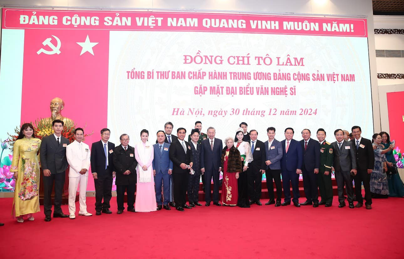Ngày 30/12, Tổng Bí thư Tô Lâm cùng các đồng chí lãnh đạo Đảng, Nhà nước đã có cuộc gặp thân mật với đại biểu văn nghệ sĩ. Buổi gặp mặt thể hiện sự quan tâm của Trung ương Đảng, Bộ Chính trị, Ban Bí thư, của Tổng Bí thư, lãnh đạo Đảng, Nhà nước nhằm cổ vũ, động viên đội ngũ văn nghệ sĩ phát huy mạnh mẽ khát vọng cống hiến, tinh thần đoàn kết, sáng tạo.