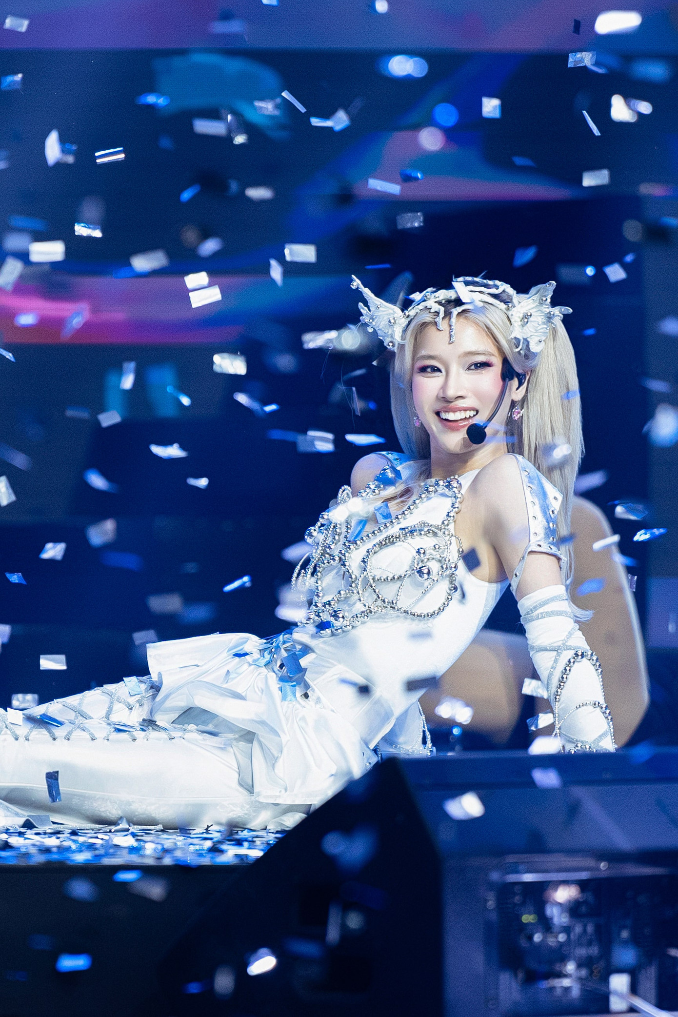 Nhóm đã lựa chọn concept cung hoàng đạo, hóa thân thành những vị thần. Để thể hiện rõ nét ý tưởng táo bạo, cả nhóm đã đầu tư những bộ trang phục mang hơi hướng futuristic qua tạo hình các cung hoàng đạo. Cô nàng Nhân Mã Hoàng Yến Chibi được fan khen ngợi xinh đẹp “siêu thực” với hình ảnh này.