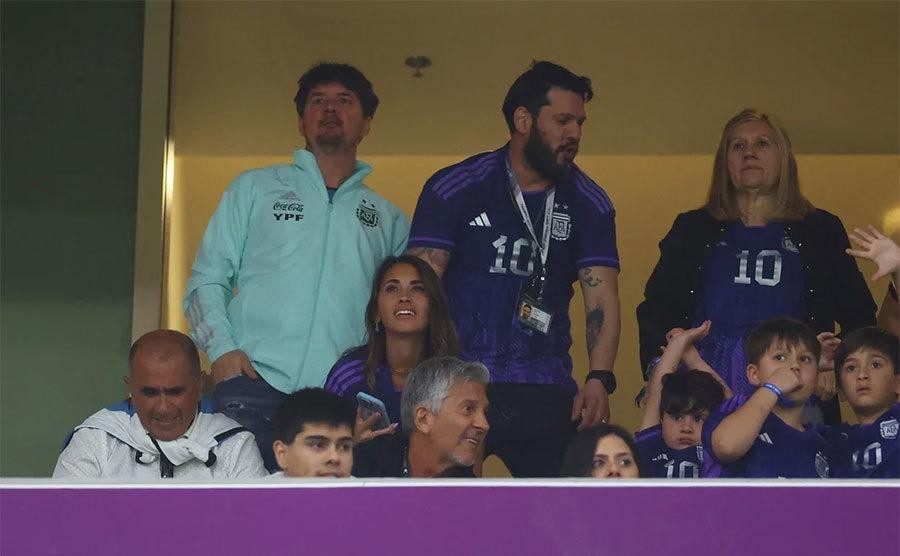 | Tại sân Lusail Iconi, vợ con, bố mẹ, anh trai và em gái Messi đều có mặt. Họ thu hút sự chú ý của khán giả và báo giới trên khán đài. |