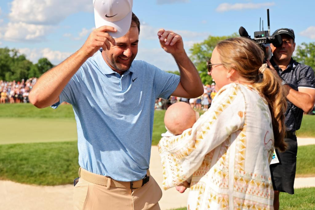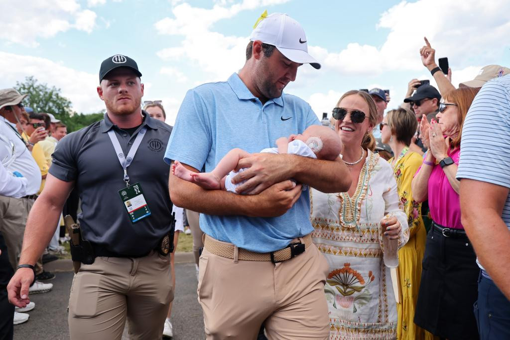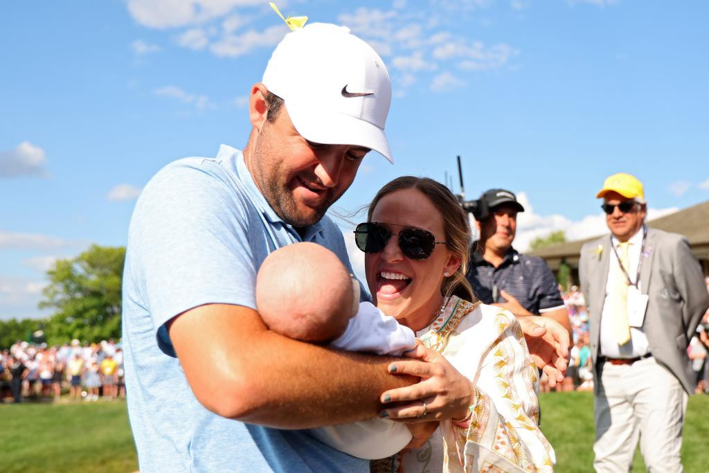 Chiến thắng này càng trở nên đặc biệt hơn, sau khi Scheffler đã lên chức cha cách đây 1 tháng. Vợ anh, Meredith, bế cậu con trai đầu lòng Bennett xuất hiện ở hố 18 để ăn mừng cùng golfer số 1 thế giới.