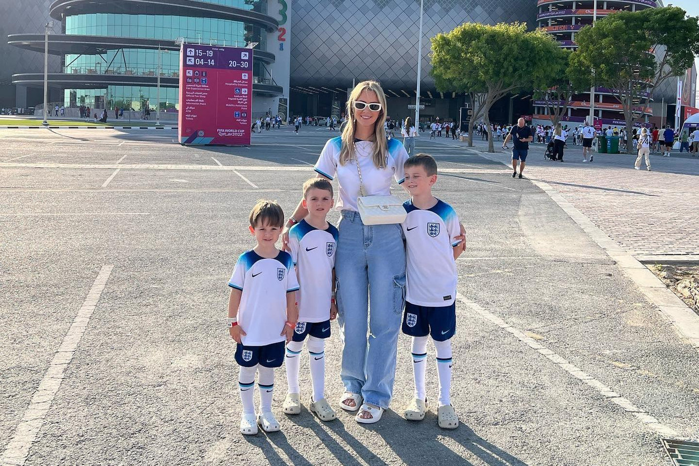 TPO - Tại World Cup 2022, người đẹp Amie - vợ trung vệ Conor Coady đã mang theo 3 cậu con trai sang Qatar để cổ vũ cho chồng và ĐT Anh thi đấu.