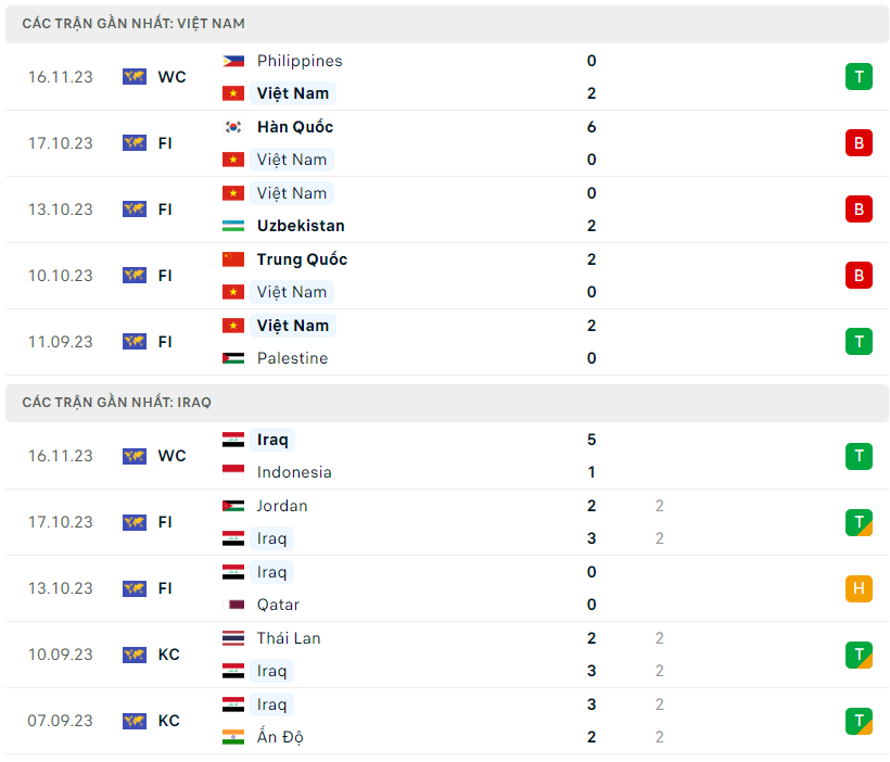 Lịch sử đối đầu, phong độ Việt Nam vs Iraq