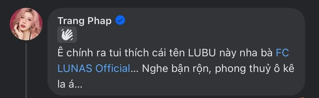 Ngay bên dưới bài đăng, nữ ca sĩ bày tỏ "Tui thích cái tên LUBU này nha bà... Nghe bận rộn, phong thuỷ á". Màn tung hứng duyên dáng của giọng hát Chỉ Là nhanh chóng nhận về nhiều lượng tương tác.
