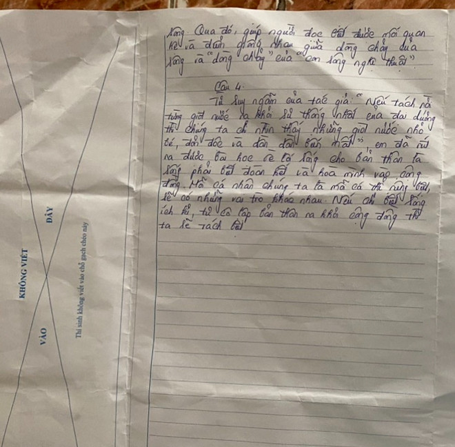 Sự việc này khiến các thí sinh cũng như dư luận bày tỏ bức xúc. Nam sinh tên M.Đ. (thuộc phòng thi số 2500) chia sẻ với Báo Đời sống Pháp luật, cộng cả thời gian đã làm bài trên tờ giấy cũ, thời gian phát giấy mới, chép lại bài... Đ. bị mất khoảng 20-30 phút. M.Đ. còn khẳng định rằng, 100% thí sinh trong phòng thi được yêu cầu viết trên tờ giấy mới và không được bù giờ, không có chuyện vẫn được viết trên giấy cũ như phản hồi của lãnh đạo Sở GD&ĐT TP.HCM.