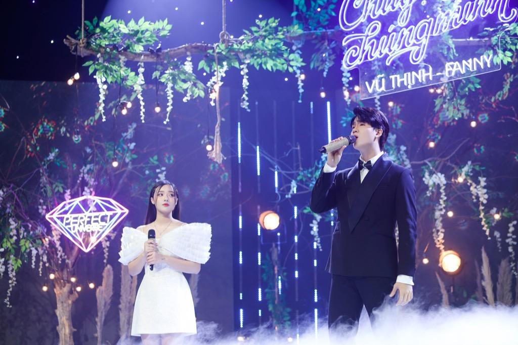Vũ Thịnh và Fanny cũng xây dựng hình ảnh trưởng thành, chín chắn hơn. Nếu Vũ Thịnh lịch lãm, tỏa sáng trong bộ suit thì cô nàng Fanny Trần cũng dịu dàng, thanh lịch trong những mẫu đầm. Vũ Thịnh tiết lộ, bạn gái đã khóc rất nhiều ghi hình cho mini album vì quá xúc động. Bị bạn trai “bóc phốt”, Fanny cũng không che giấu mà nghẹn ngào cho biết mình đã phải cố kìm nén cảm xúc để liveshow diễn ra tốt đẹp.