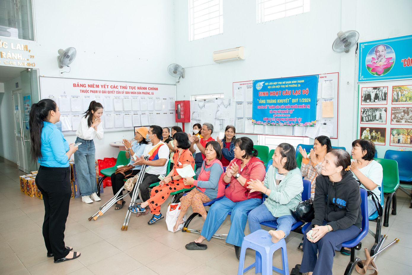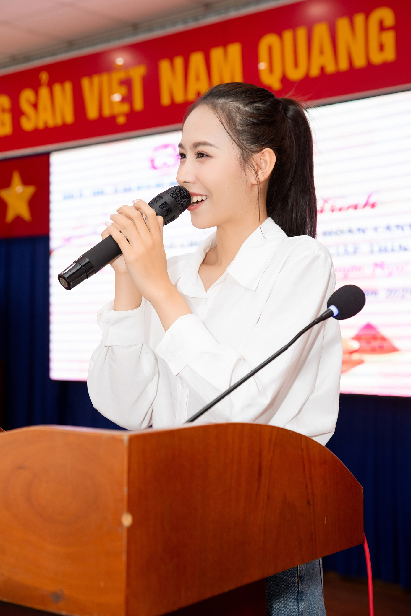 Cô nàng diện trang phục giản dị, đầy thân thiện trong buổi giao lưu cùng bà con gồm những hộ gia đình có hoàn cảnh khó khăn và người khuyết tật. Trong không khí rộn ràng của ngày đầu năm mới 2024, Ngọc Hằng đã truyền tải năng lượng tích cực và không quên gửi tặng ca khúc Xuân đến cho bà con. Với tài năng ca hát của mình, Ngọc Hằng đã nhận được sự hưởng ứng nhiệt tình từ người dân.