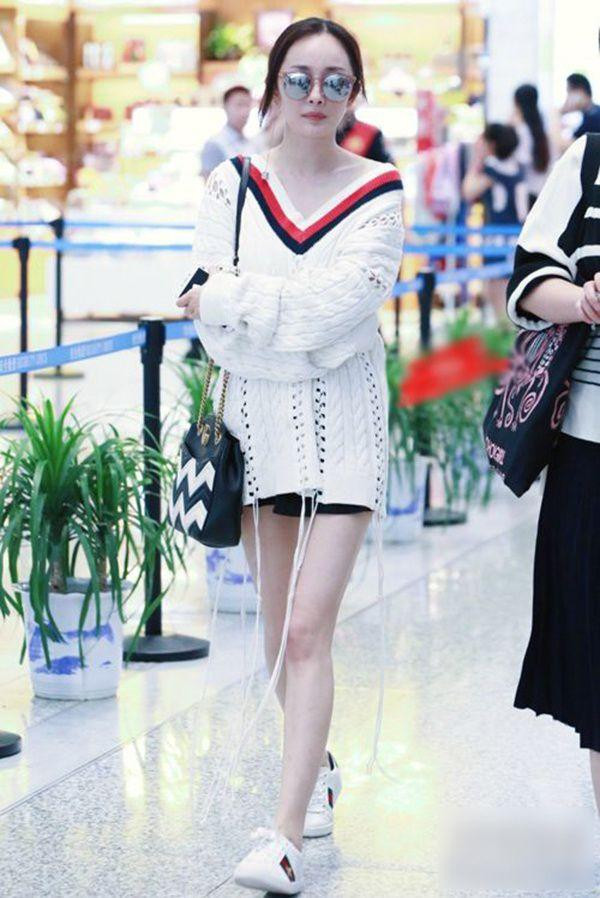 Trước kia, Dương Mịch rất chuộng diện quần soóc hay váy ngắn, rồi mốt áo giấu quần để khoe đôi chân dài cực phẩm của mình. Nhưng mới đây, cô lại đổi style với quần ống rộng, áo cardigan lửng khoe vòng eo thon và áo blazer.