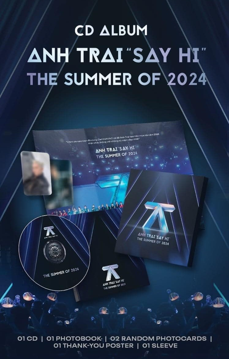 Mới đây, đông đảo netizen tỏ ra hào hứng, sẵn sàng "chốt đơn" khi BTC Anh Trai "Say Hi" thông báo mở bán CD album các ca khúc được dàn "anh trai" trình diễn trong 5 live stage. Theo đó, ấn phẩm nhận về bao gồm 1 đĩa CD, 1 Photobook (60 trang bao gồm những khoảnh khắc đáng nhớ và những hình ảnh chưa được công bố), 2 Random Photocards (ngẫu nhiên 2/116 mẫu, trong đó có 1 ảnh selfie độc quyền đêm Chung Kết), 1 Thank-you Poster, 1 Sleeve.