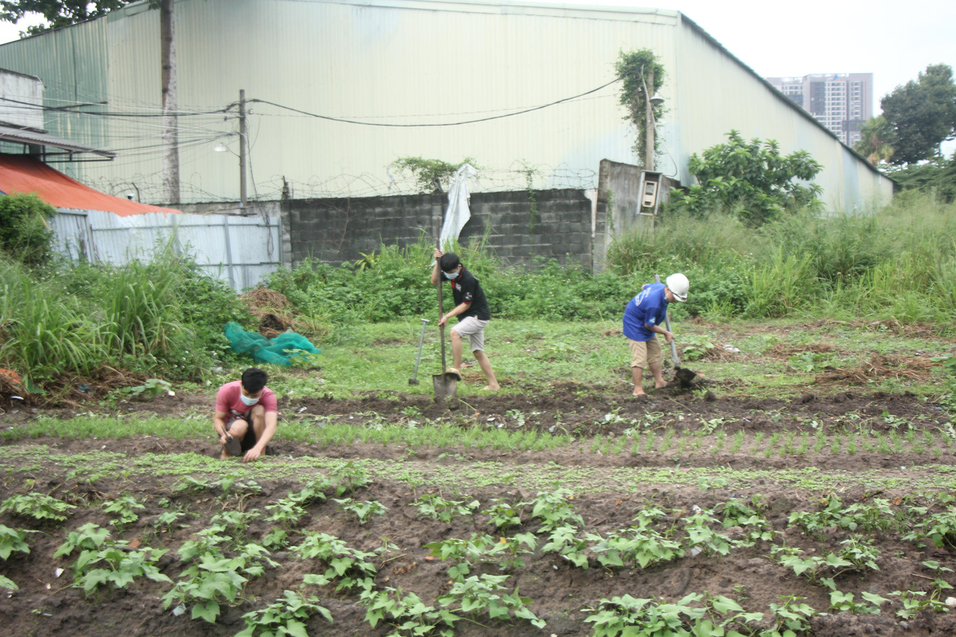 Chia sẻ về mảnh vườn này, Nguyễn Đình Tiến (22 tuổi) cho biết ban đầu các bạn chỉ tính trồng một ít rau xanh để phục vụ bữa ăn cho chính mình và những người trong xóm trọ. Tuy nhiên thấy tình hình dịch chưa thể kết thúc sớm, đồng thời mảnh đất hoang cũng khá rộng nên các bạn quyết định mở rộng diện tích để có thể hỗ trợ thêm những người xung quanh.