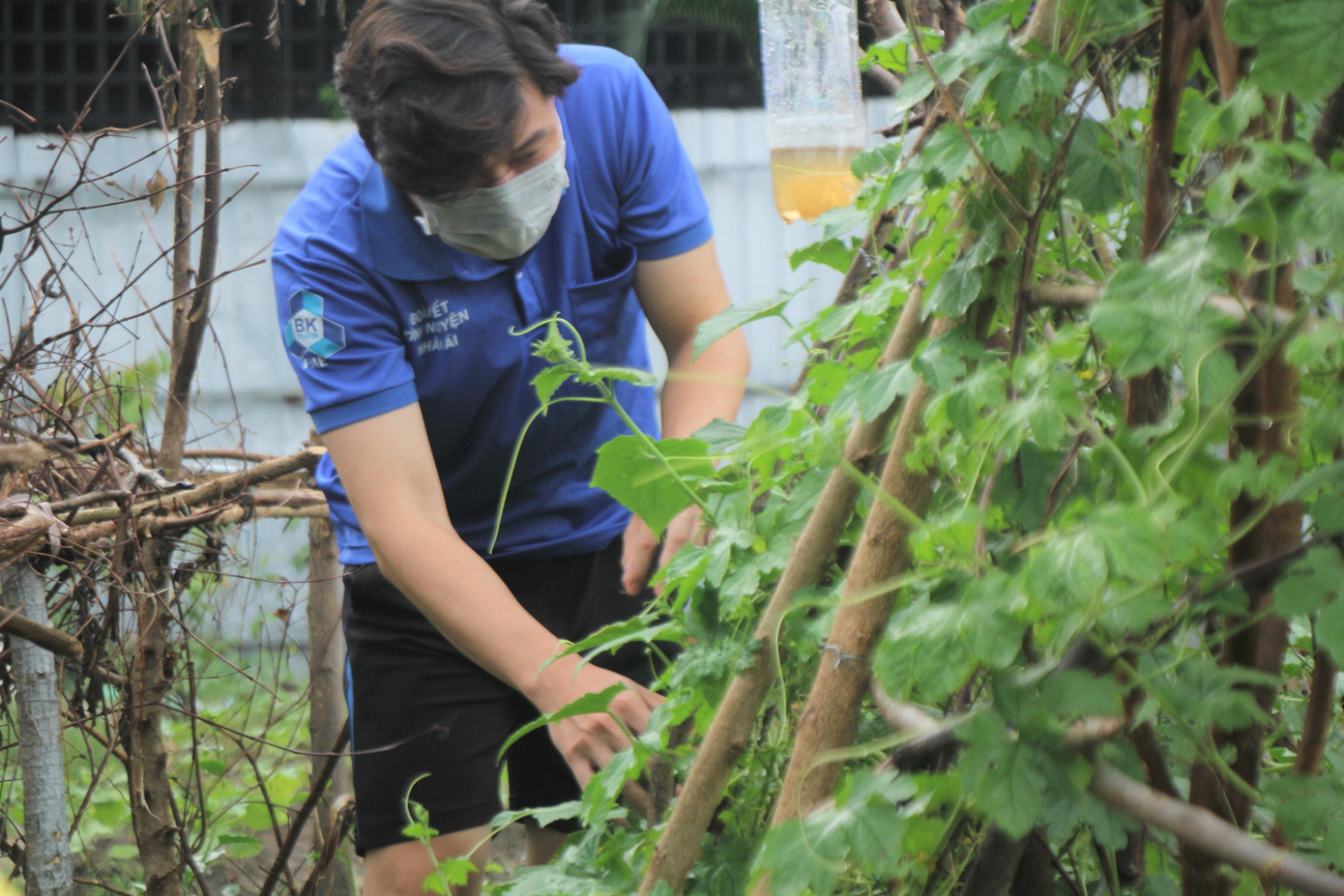 Mặt khác, vì không có kinh phí mua phân bón (lúc đầu) cũng như lúc này không thể đi mua được do bị hạn chế đi lại trong những ngày siết chặt giãn cách, cho nên nhiều cây, rau không được tươi tốt như mong đợi. “Trước khó khăn này, nhóm mình đã kiếm cây tàu bay mọc gần nơi ở đem về ủ để làm phân hữu cơ (phương pháp phổ biến ở quê hay làm). Tuy nhiên giải pháp này cũng không thể đáp ứng toàn bộ diện tích trồng rau được và cũng cần nhiều ngày để ủ xong”, Đức Thắng nói.