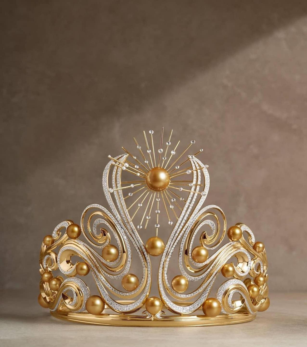 Thiết kế gồm những đường lượn sóng bao quanh Mặt Trời đang tỏa những tia sáng lấp lánh, làm mọi người liên tưởng đến đôi chim thiên nga hướng về phía Mặt Trời. So với mẫu vương miện đã dùng trong hai cuộc thi năm 2022 và 2023, thiết kế mới được khen là hoành tráng hơn, nổi bật hơn.