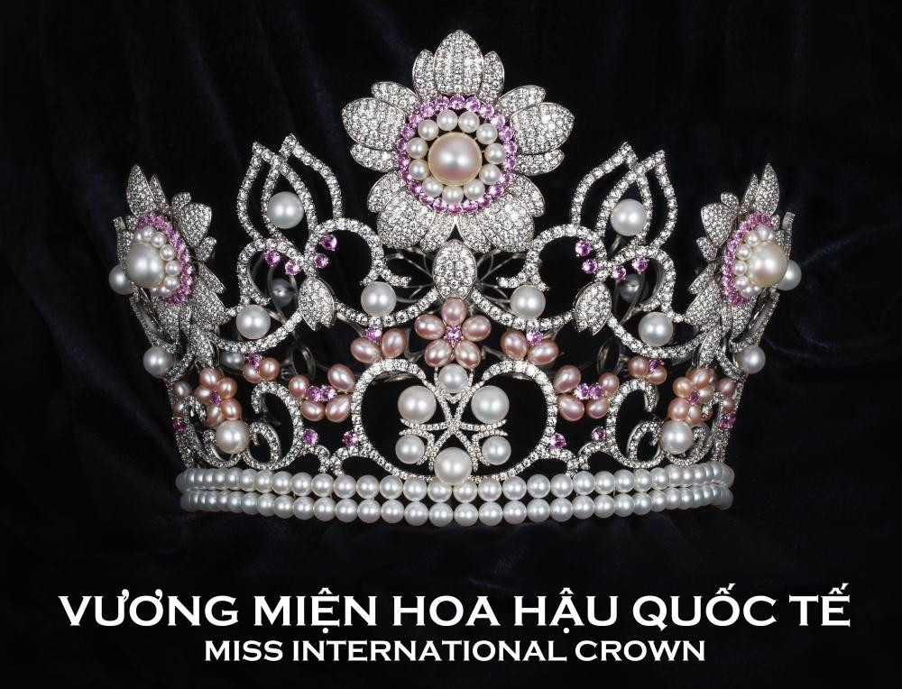 Chiếc vương miện Miss International (Hoa hậu Quốc tế) 2022 mang chủ đề Hoa anh đào đón nắng Xuân, được lấy cảm hứng từ vẻ đẹp của những đóa anh đào đang độ rực rỡ dưới ánh nắng mùa Xuân, mang vẻ đẹp của niềm tin và sự tích cực. Thiết kế gồm 333 viên ngọc trai màu trắng, với điểm nhấn là 3 viên ngọc trai được tuyển chọn với kích thước lên đến hơn 15mm, cộng thêm 1960 viên đá quý trắng tượng trưng cho năm đầu tiên cuộc thi Hoa hậu Quốc tế được tổ chức.