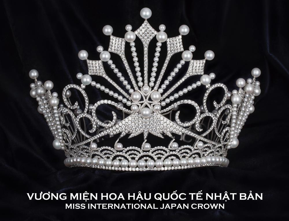 Vương miện Miss International Japan (Hoa hậu Quốc tế Nhật Bản) có chủ đề Mặt Trời trên đỉnh núi Phú Sĩ, được lấy cảm hứng từ vẻ đẹp của núi Phú Sĩ giữa ánh dương, biểu tượng của xứ Phù Tang. Vương miện Miss International Japan gồm 308 viên ngọc trai với các kích cỡ khác nhau, cùng gần 1400 viên đá quý đính kết lung linh tô điểm cho thiết kế.