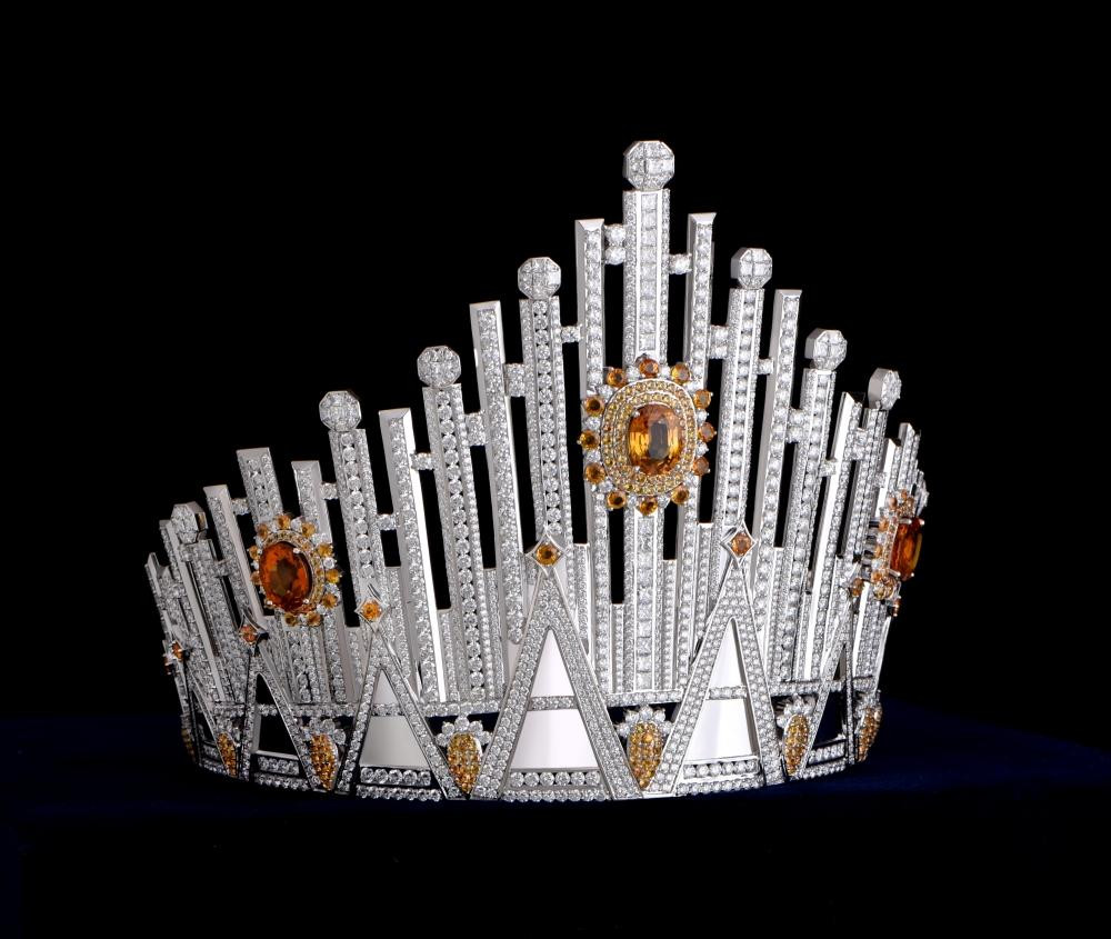 Vinawoman - Infinity được chế tác hoàn toàn từ vàng trắng cao cấp, đính 3 viên sapphire vàng tại vị trí trung tâm, 279 viên sapphire và 2.137 viên kim cương với kích thước khác nhau bao phủ hoàn toàn khung vương miện. Đội ngũ nghệ nhân kim hoàn đã tốn hơn 2.000 giờ làm việc với hơn 20 nghệ nhân.