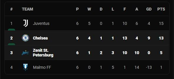 Trận hòa trên đất Nga đồng nghĩa với việc Chelsea đánh mất ngôi đầu bảng H Champions League vào tay Juventus, đội bóng đã giành chiến thắng ở lượt trận cuối cùng. Đội bóng nước Anh có khả năng phải đối mặt với Real Madrid hoặc Bayern Munich ở vòng 16 đội. Trước đó, Chelsea cũng bị mất ngôi đầu bảng Ngoại hạng Anh sau trận thua West Ham.