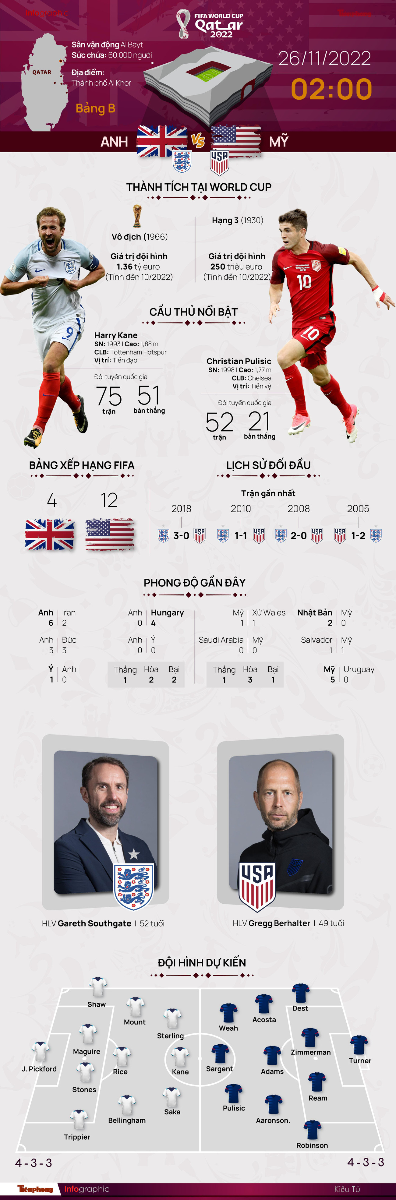 Google News World Cup 2022: Tương quan trước trận Anh - Mỹ, 2 giờ 26/11