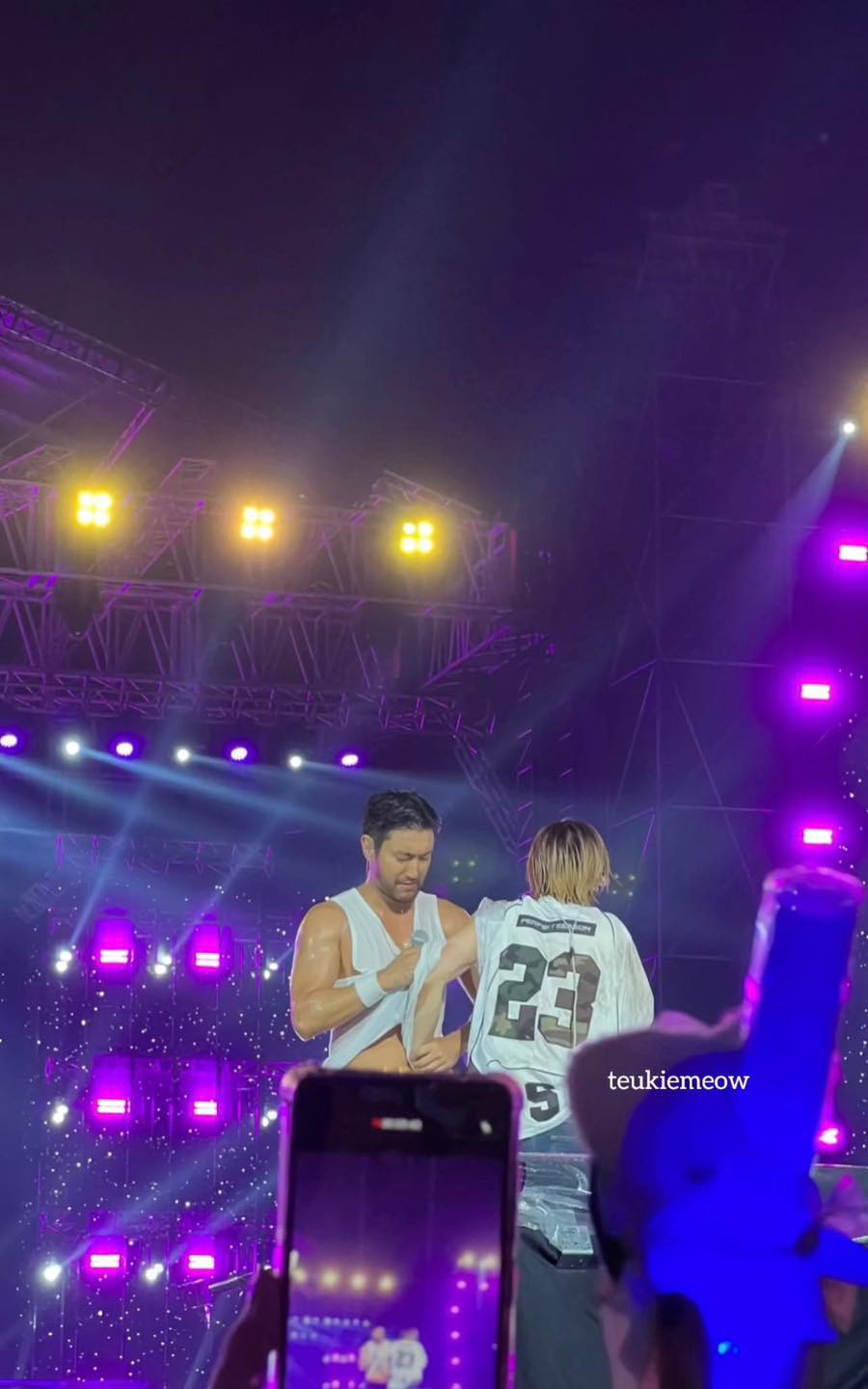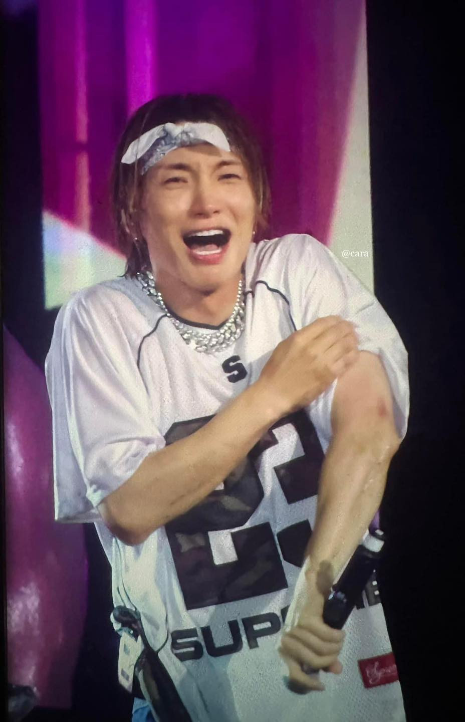 Vì quá nhiệt huyết, Lee Teuk khi "ke đầu" đã bị trượt ngã và trầy bắp tay. Người hâm mộ không khỏi lo lắng cho anh nhưng trưởng nhóm SUPER JUNIOR lập tức đứng dậy, cười lớn và còn đùa với vết thương. Siwon cũng lấy áo của mình để lau máu trên tay Lee Teuk làm fan vừa thương vừa buồn cười.