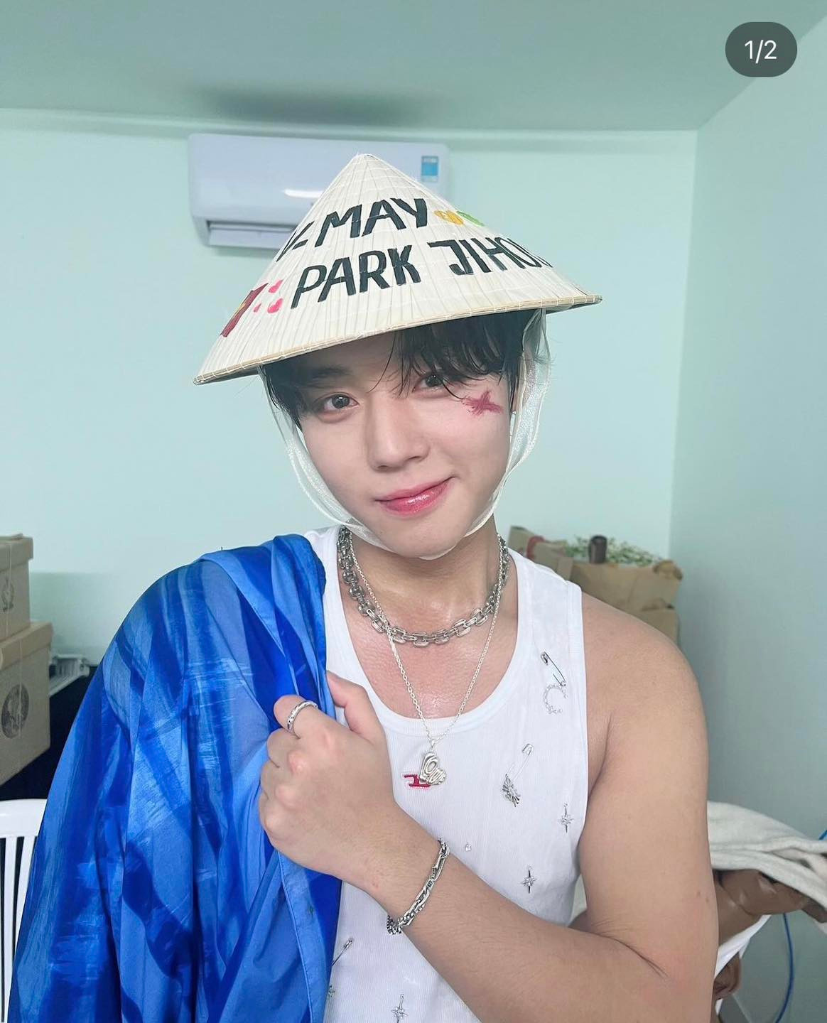 Một chiếc idol cũng mê nón lá gọi tên Park Jihoon, anh chàng cũng khoe lên mạng xã hội hình ảnh đội nón lá ngay sau đêm diễn. Đây là món quà từ fanpage WithHoon tại Việt Nam dành tặng.