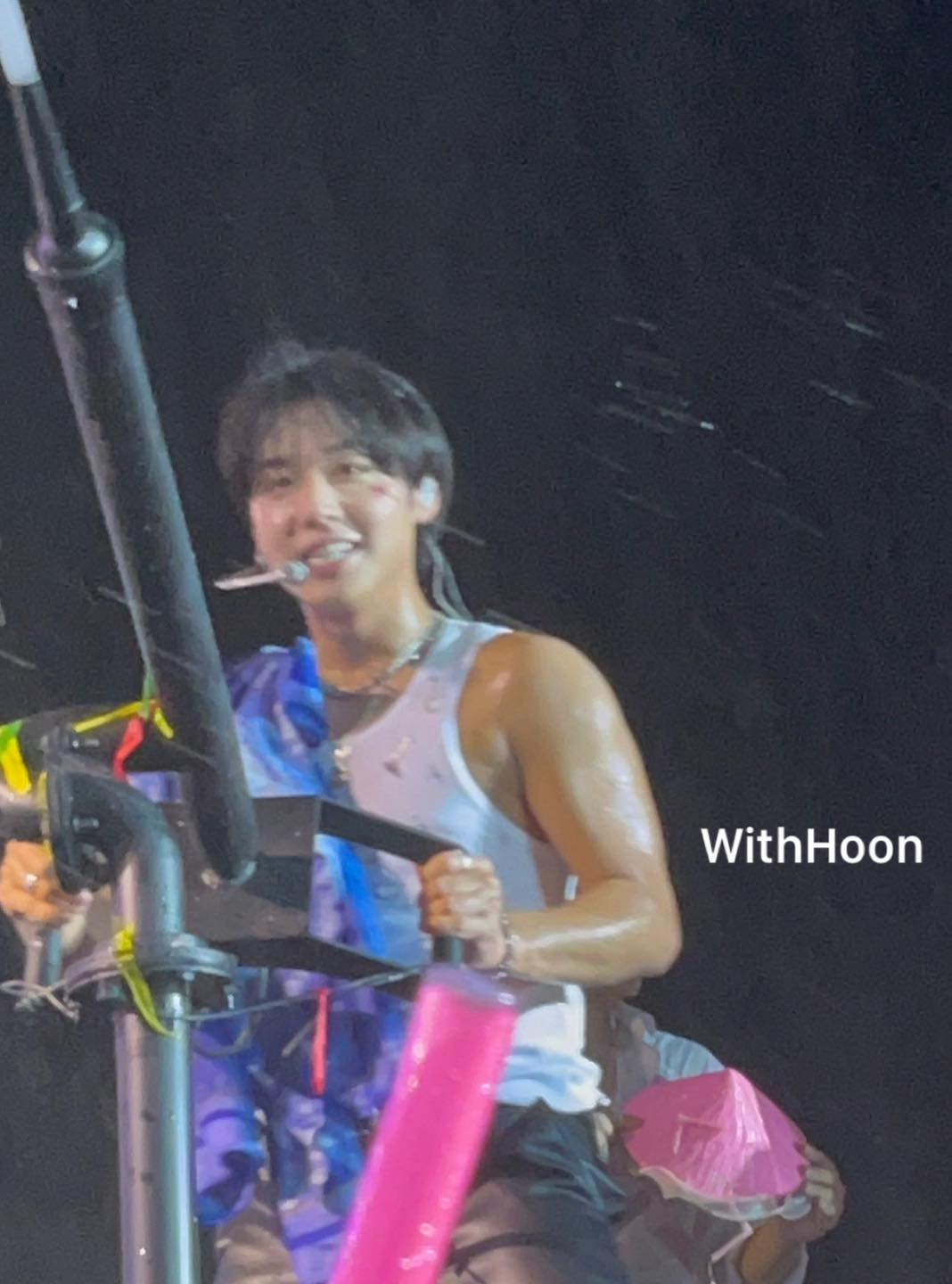 Set diễn của Jihoon diễn ra nhanh chóng nhưng đưa khán giả đi qua mọi cung bậc cảm xúc. "Tiên tử nháy mắt của K-Pop" khiến người hâm mộ Việt không ngừng ồ à với "gương mặt baby" nhưng thân hình lại đối nghịch.