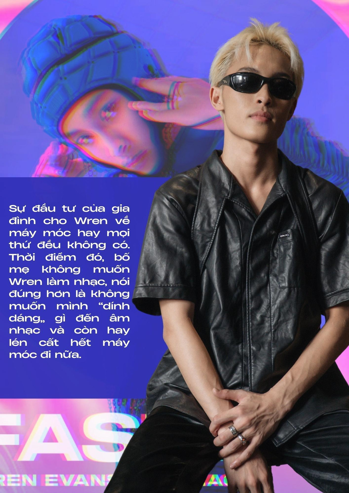 Thật ra từ đầu, sự đầu tư của gia đình cho Wren về máy móc hay mọi thứ đều không có. Những ca khúc đầu tiên mình đăng lên Soundcloud đều được làm từ máy tính nhỏ và một chiếc… iPhone 6. Thời điểm đó, bố mẹ không muốn Wren làm nhạc, nói đúng hơn là không muốn mình “dính dáng” gì đến âm nhạc và còn hay lén cất hết máy móc đi nữa.