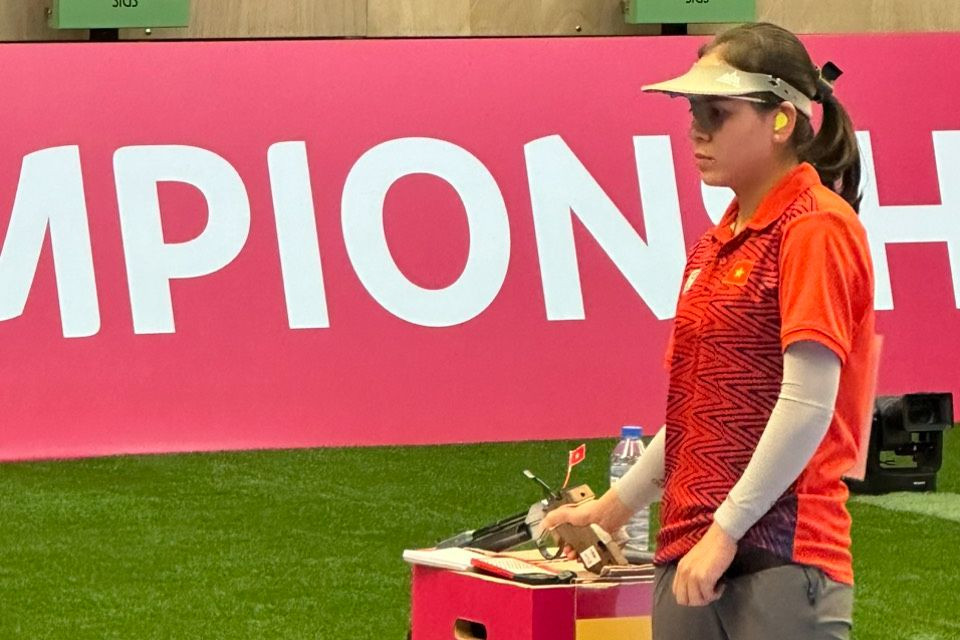 | Thu Vinh tại giải vô địch bắn súng thế giới đang diễn ra tại Baku, Azebaijan. |
