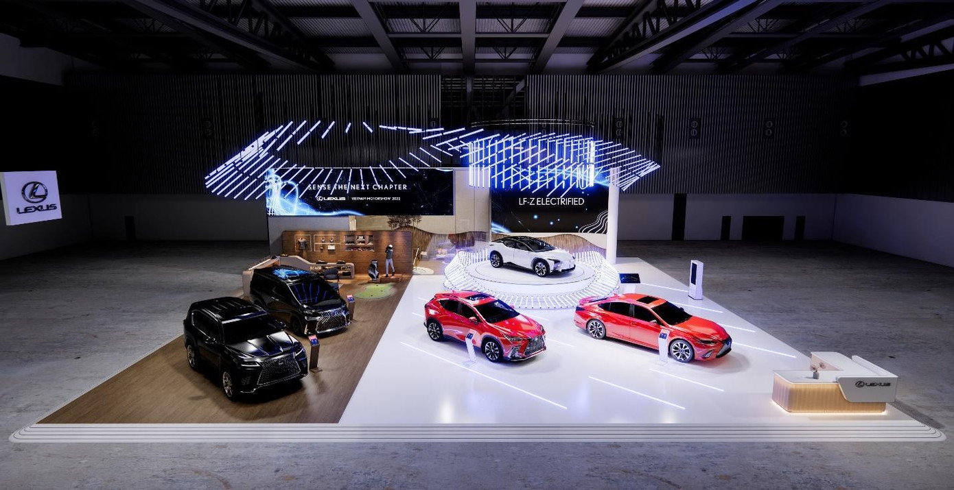 Gian hàng của Lexus được thiết kế với 3 không gian đem đến cuộc phiêu lưu thú vị cho khách hàng hàng. Không gian điện hóa với các mẫu xe xanh thể hiện rõ tầm nhìn điện hóa dài hạn của Lexus. Không gian trải nghiệm sang trọng là sự kết hợp giữa tông màu ấm lấy cảm hứng từ các mẫu xe mới nhất dành cho những ông chủ. Không gian trải nghiệm thương hiệu Immersive Lounge hứa hẹn mang đến hành trình đánh thức mọi giác quan, hay các bộ sưu tập chế tác thủ công, bộ sưu tập thời trang chế tác dành riêng cho Lexus được lấy cảm hứng từ con người và triết lý bảo vệ môi trường.