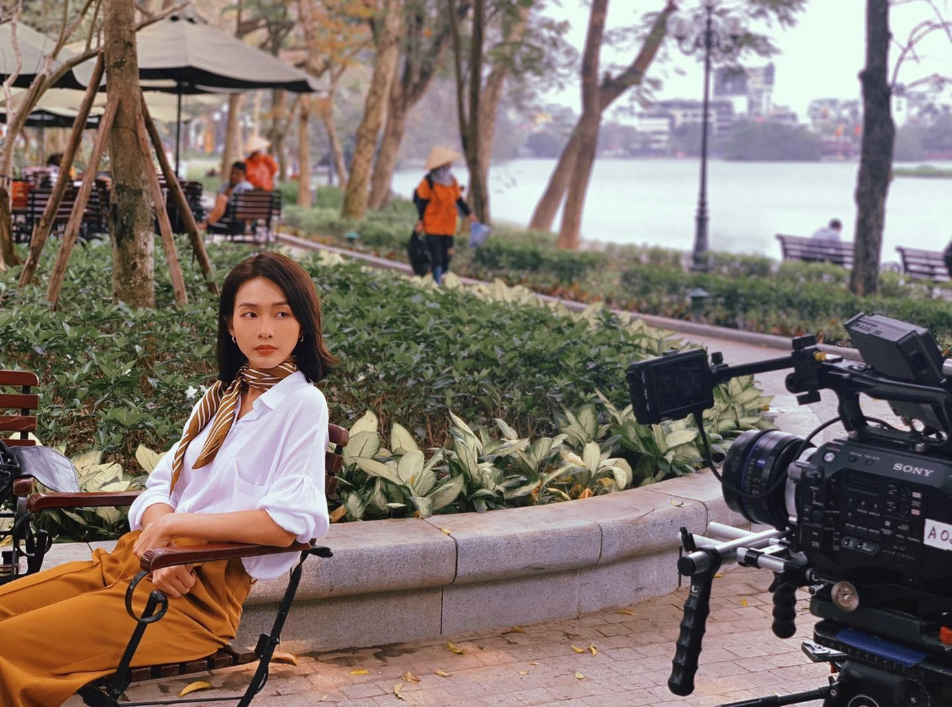 Khả Ngân còn chuẩn bị cho vai diễn của mình rất nhiều mẫu áo trắng không cần quá nhiều chi tiết rườm rà nhưng vẫn đẹp mắt, có điểm nhấn. Như chiếc áo với phần cổ cao xếp bèo nhún được khen là rất hợp với vóc dáng nữ diễn viên.