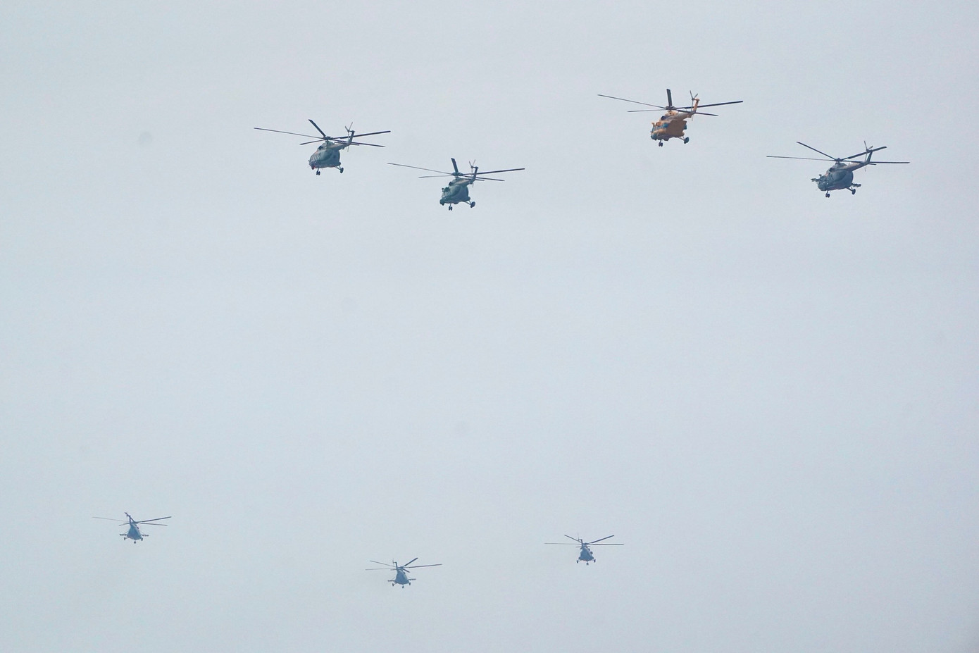 | Trực thăng Mi bay thục luyện trên bầu trời Hà Nội. |