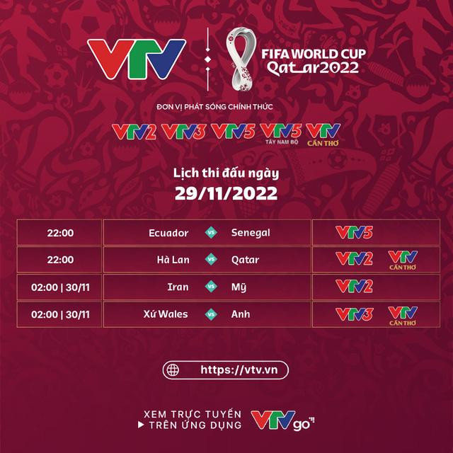 Trận đấu giữa Iran và Mỹ diễn ra lúc 02h00 ngày 30/11 được VTV tường thuật trực tiếp duy nhất trên kênh VTV2 cũng như ứng dụng VTVGo. Ngoài ra, khán giả có thể xem trực tuyến các kênh sóng này thông qua ứng dụng TV360 của Viettel.