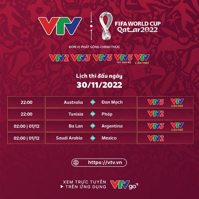 Trận đấu giữa Saudi Arabia và Mexico sẽ được VTV tường thuật trực tiếp trên VTV3 và VTV Cần Thơ vào lúc 02h00 ngày 1/12, bao gồm chương trình bình luận trước, giữa và sau trận.