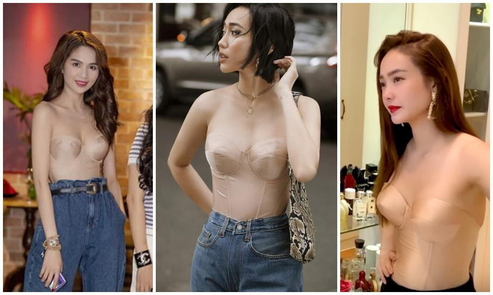 Chiếc áo corset màu nude này được Ngọc Trinh và nhiều người đẹp ưa chuộng. Còn netizens thì cho rằng nhìn từ xa, các cô gái chẳng khác gì mặc quần mà quên mặc áo.