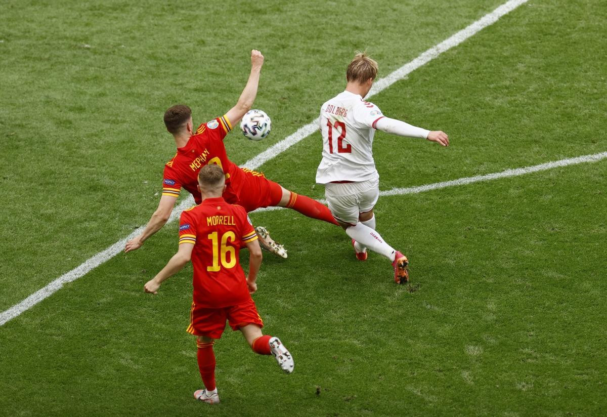Khi mà những bài tấn công của đội tuyển Xứ Wales vẫn chưa mang lại hiệu quả khi hàng thủ của họ lại mắc sai lầm chết người ở đầu hiệp 2. Tiền đạo Martin Braithwaite của Đan Mạch có tình huống căng ngang nguy hiểm, Neco Williams (Xứ Wales) phá bóng bất cẩn tạo điều kiện cho Kasper Dolberg hoàn tất cú đúp. Tiền đạo 23 tuổi này là cầu thủ Đan Mạch đầu tiên có ít nhất hai lần lập công ở một giải đấu lớn, kể từ trường hợp của Nicklas Bendtner ở EURO 2012.