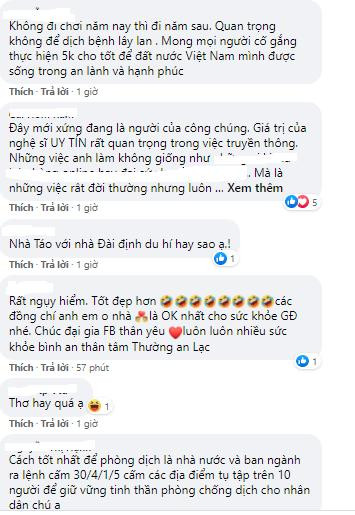 Đính kèm bài thơ tự sáng tác, nam nghệ sĩ đính kèm bức ảnh Táo Quân đeo khẩu trang, truyền tải thông điệp mong mọi người cùng thực hiện "5K": Khẩu trang – Khử khuẩn – Khoảng cách – Không tập trung – Khai báo y tế.