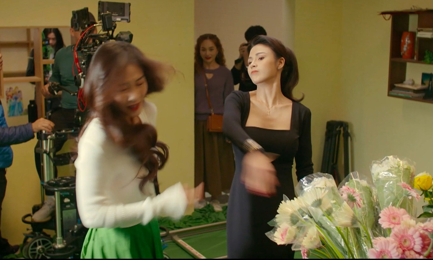 Vậy là chúng ta có một cảnh phim đặc biệt khi Khả Ngân, Lương Thu Trang, Lan Phương và Thanh Sơn cùng xuất hiện trong một khung hình. Thú vị ở chỗ Thanh Sơn đều từng đóng cặp với cả ba nữ diễn viên, nên khán giả mới nói vui rằng không biết nam diễn viên có cảm giác gì khi thấy ba “người tình màn ảnh” hội ngộ.