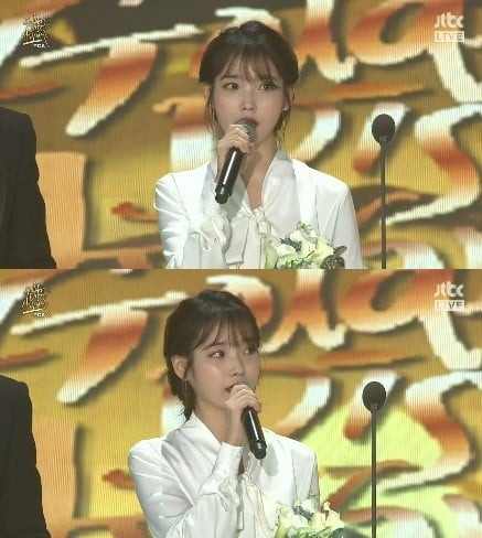 Thời điểm đó, IU cũng như giới giải trí Hàn chìm trong nỗi buồn vì tin Jonghyun (SHINee) qua đời. Nam ca sĩ quá cố và IU là anh em thân thiết trong giới. Cô chia sẻ khi nhận giải: "Thật lòng, tôi vẫn buồn rất nhiều vì một người bạn, một người nghệ sĩ, một người mà tôi rất ngưỡng mộ đã rời khỏi thế giới này".