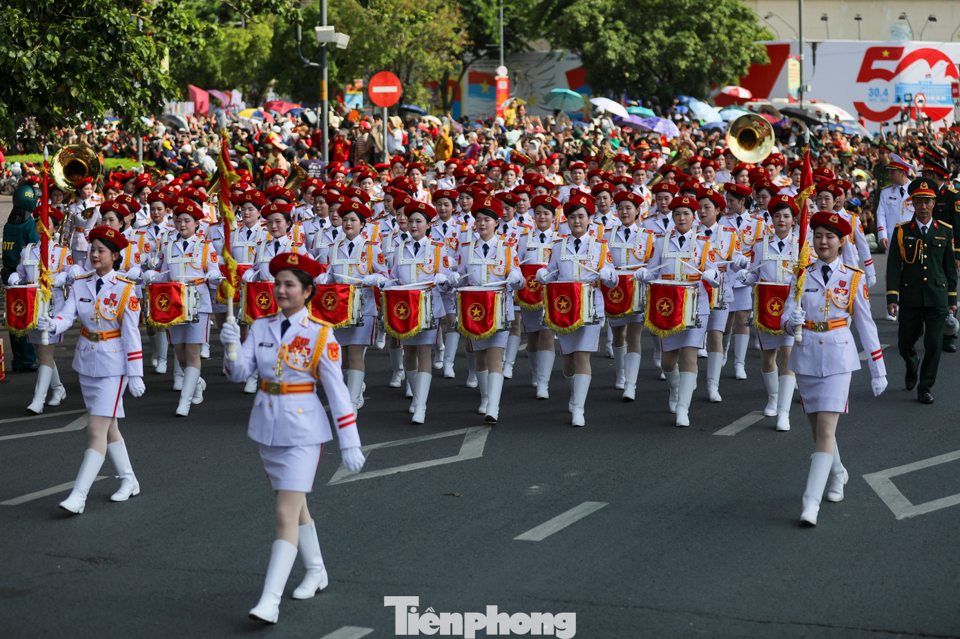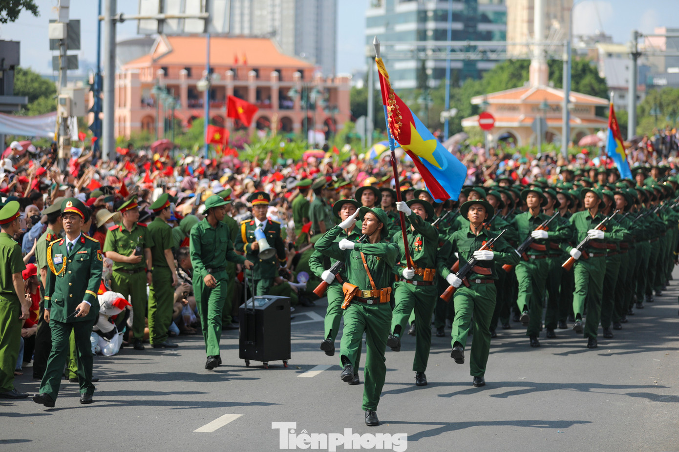 Sau khi hoàn thành phần nghi thức trang trọng tại khán đài chính trên đường Lê Duẩn, các khối diễu binh, diễu hành tiếp tục qua phố đi bộ Nguyễn Huệ rồi tiến ra bến Bạch Đằng trong sự chào đón nồng nhiệt của hàng ngàn người dân.