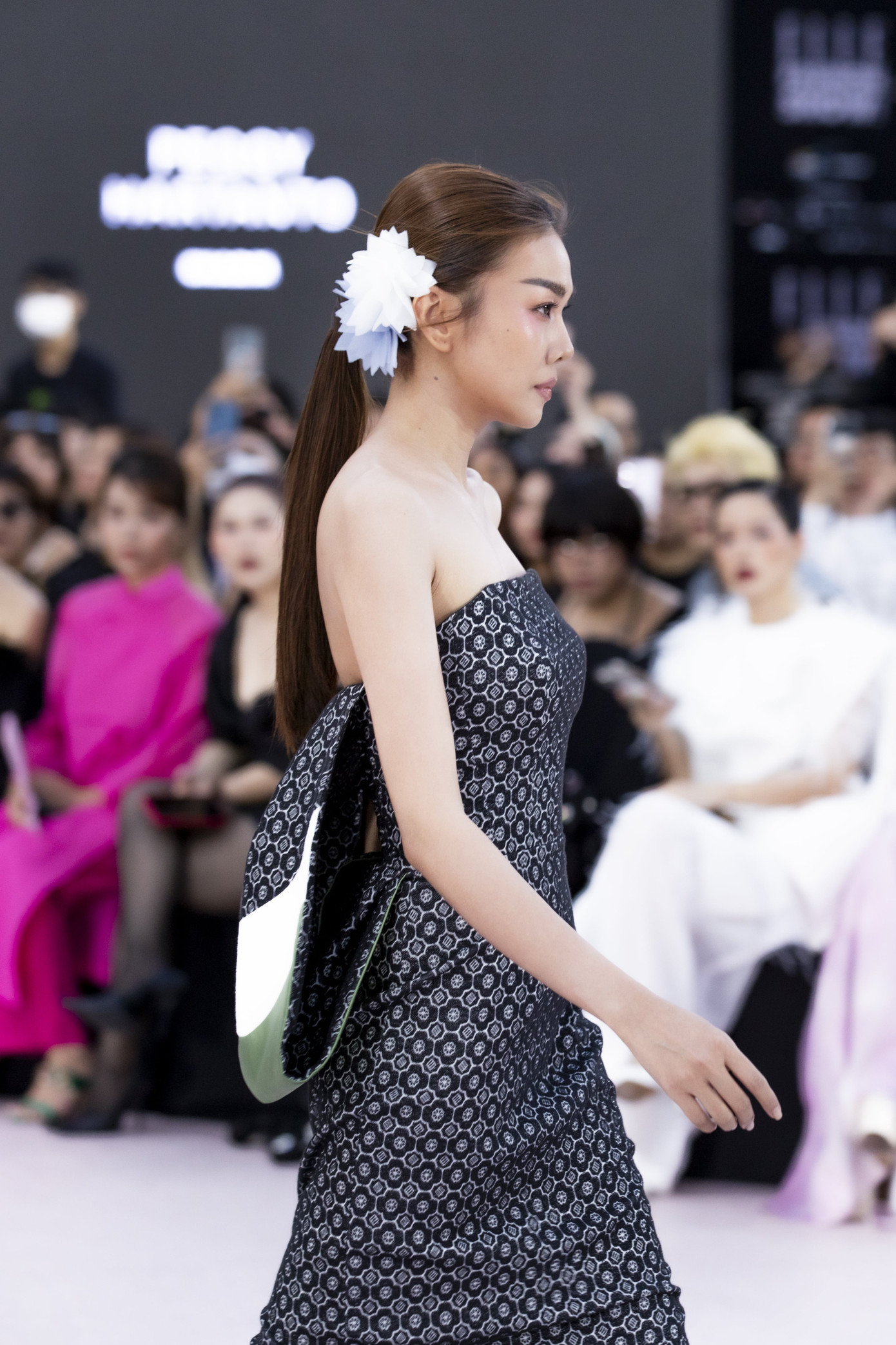 Bộ váy có điểm nhấn là phần vạt phía sau tương tự như kimono của Nhật Bản. Thanh Hằng chọn lối catwalk nhẹ nhàng, tinh tế để tôn lên bộ trang phục. Nhiều khán giả nhận xét, Thanh Hằng catwalk phù hợp tinh thần của bộ sưu tập mà nhà thiết kế hướng tới.