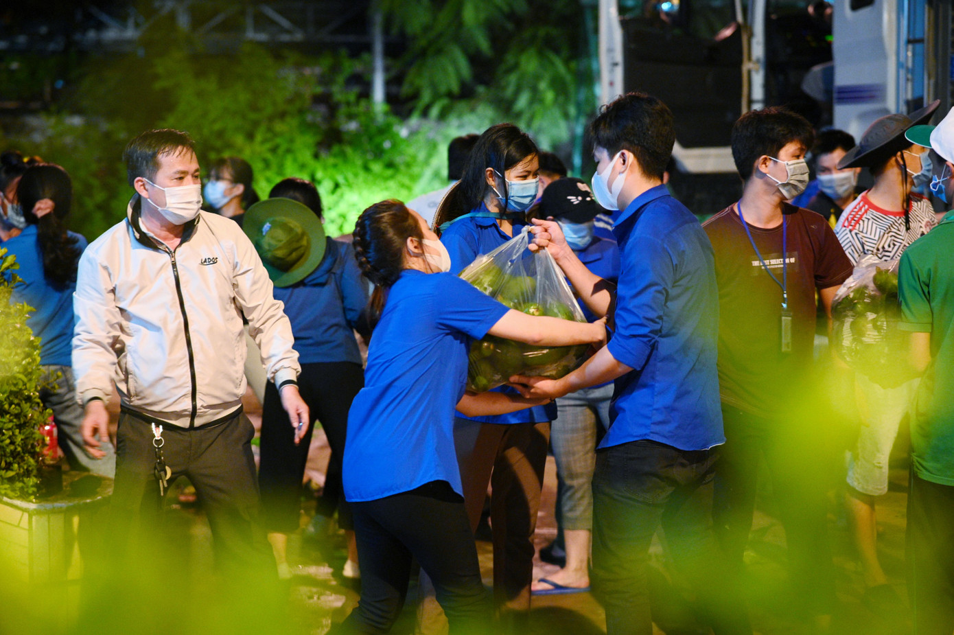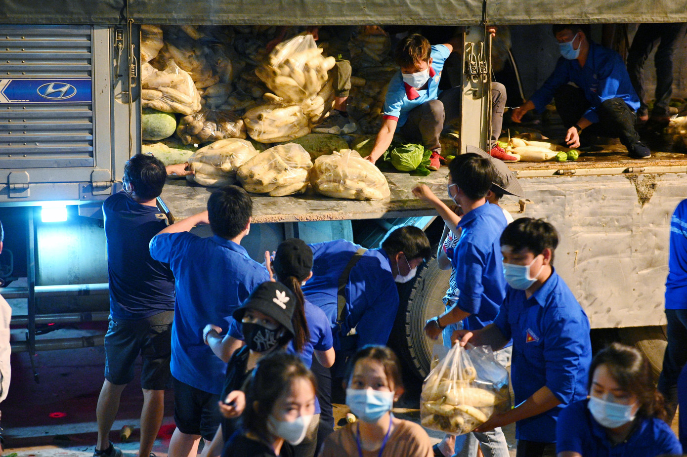 Đêm muộn nhận được thông tin, chuyến xe sẽ về Bình Dương sớm hơn dự kiến, anh Lâm và ban chỉ huy đội tình nguyện phản ứng nhanh đã huy động đoàn viên, thanh niên trong đội tham gia bốc dỡ rau, củ.